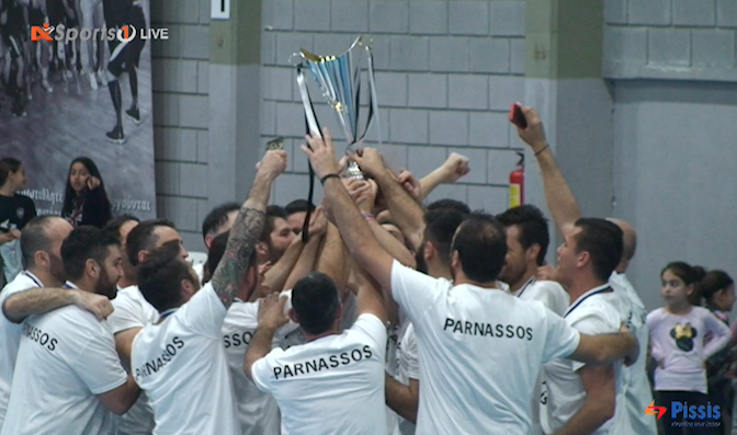 Ο Παρνασσός Στροβόλου πανηγύρισε την κατάκτηση του Πρωταθλήματος ΟΠΑΠ Ανδρών Handball 2018 – 19 με μγάλη νίκη 34 – 21.