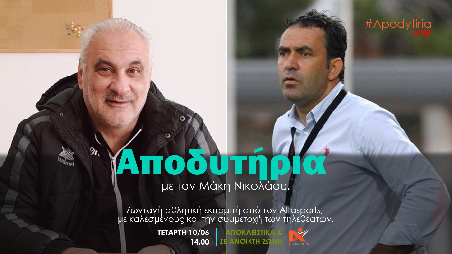 Μην χάσετε αύριο Τετάρτη 10/06/2020 η ώρα 14:00 το τέτσρτο επεισόδιο της ζωντανής αθλητικής εκπομπής “ΑΠΟΔΥΤΗΡΙΑ” με τον Μάκη Νικολάου..