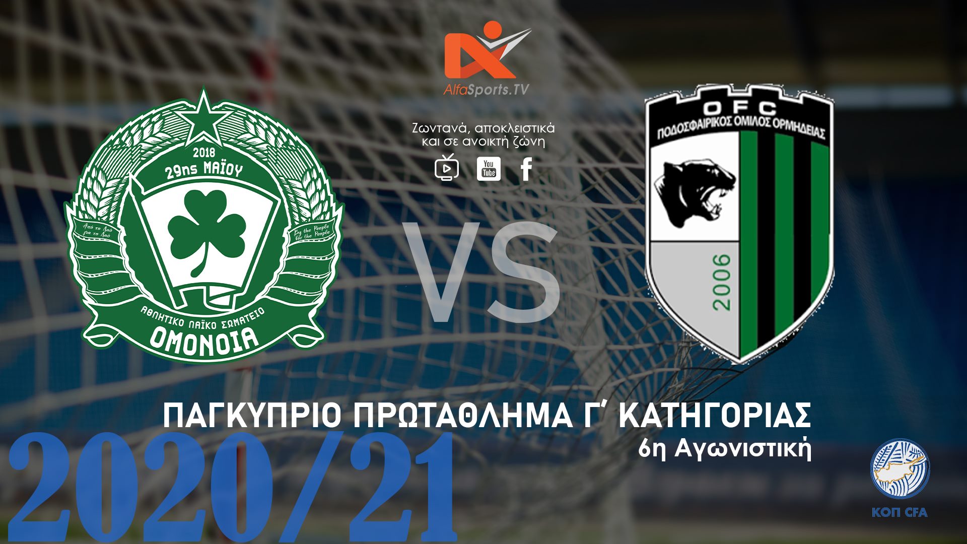 Μην χάσετε αυτή τη Κυριακή 25/10/2020 η ώρα 14:30 το μεγάλο ντέρμπι κορυφής της ΄Γ Κατηγορίας ανάμεσα σε ΟΜΟΝΟΙΑ και.