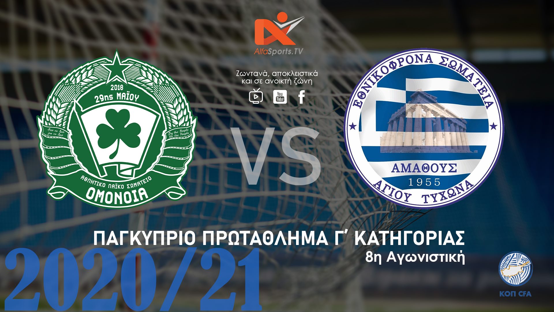 Μην χάσετε αυτή τη Κυριακή 08/11/2020 η ώρα 14:30 ακόμα ένα αγώνα της ΄Γ Κατηγορίας ανάμεσα σε ΟΜΟΝΟΙΑ και ΑΜΑΘΟΥΣ.