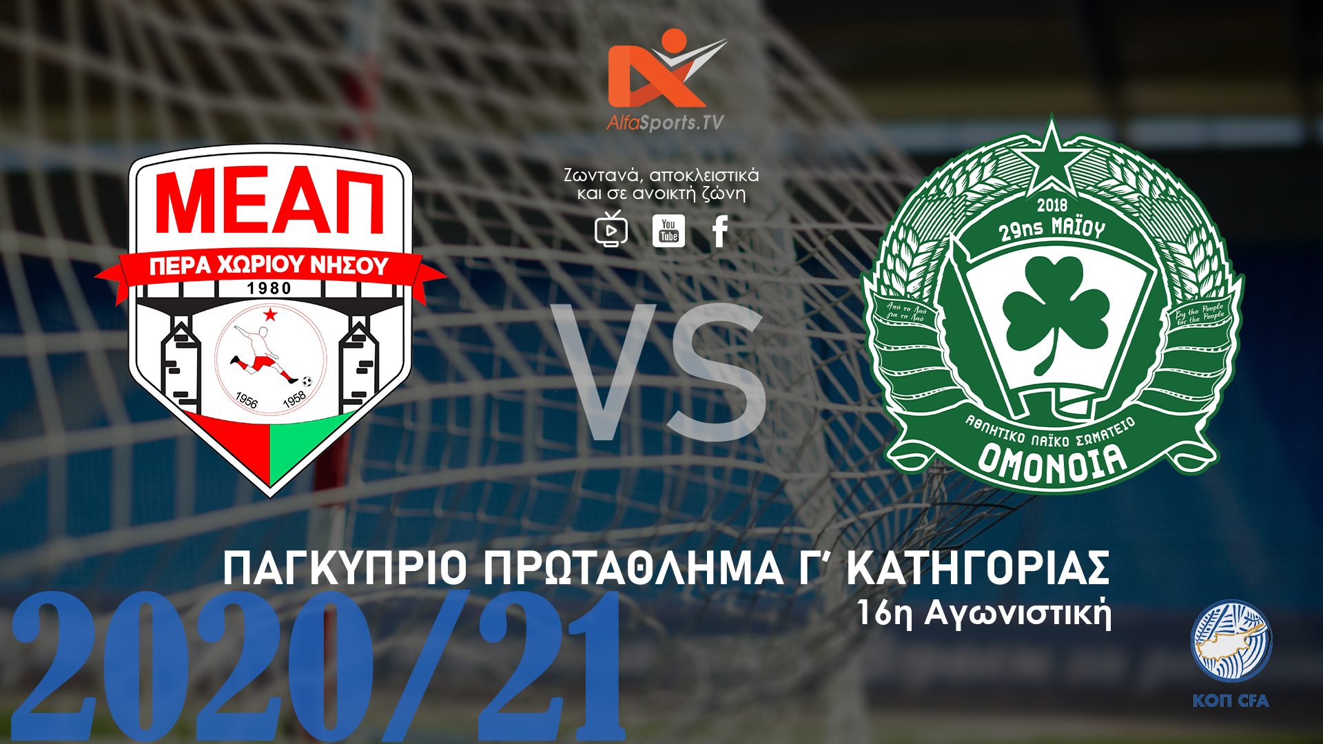 Μην χάσετε ακόμη ένα ποδοσφαιρικό ραντεβού στο Παγκύπριο Πρωτάθλημα΄Γ Κατηγορίας, όπου η ΜΕΑΠ υποδέχεται στην έδρα της την πρωτοπόρο ΟΜΟΝΟΙΑ..