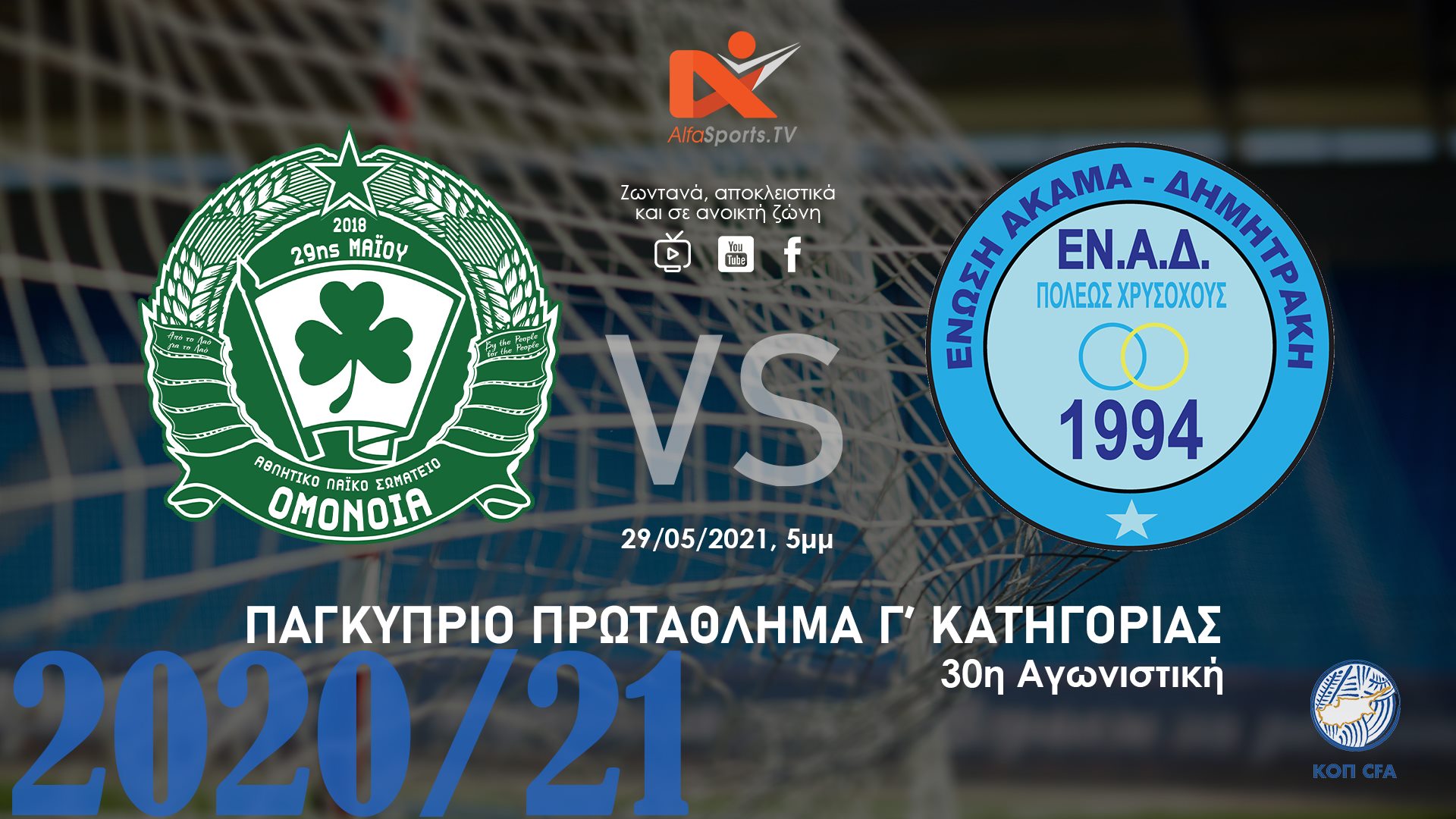 Τελευταία αγωνιστική για το πρωτάθλημα της Γ κατηγορίας, με την 30η αγωνιστική και το παιχνίδι ΟΜΟΝΟΙΑ 29Μ vs ΕΝ.Α.Δ ΠΟΛΗΣ.