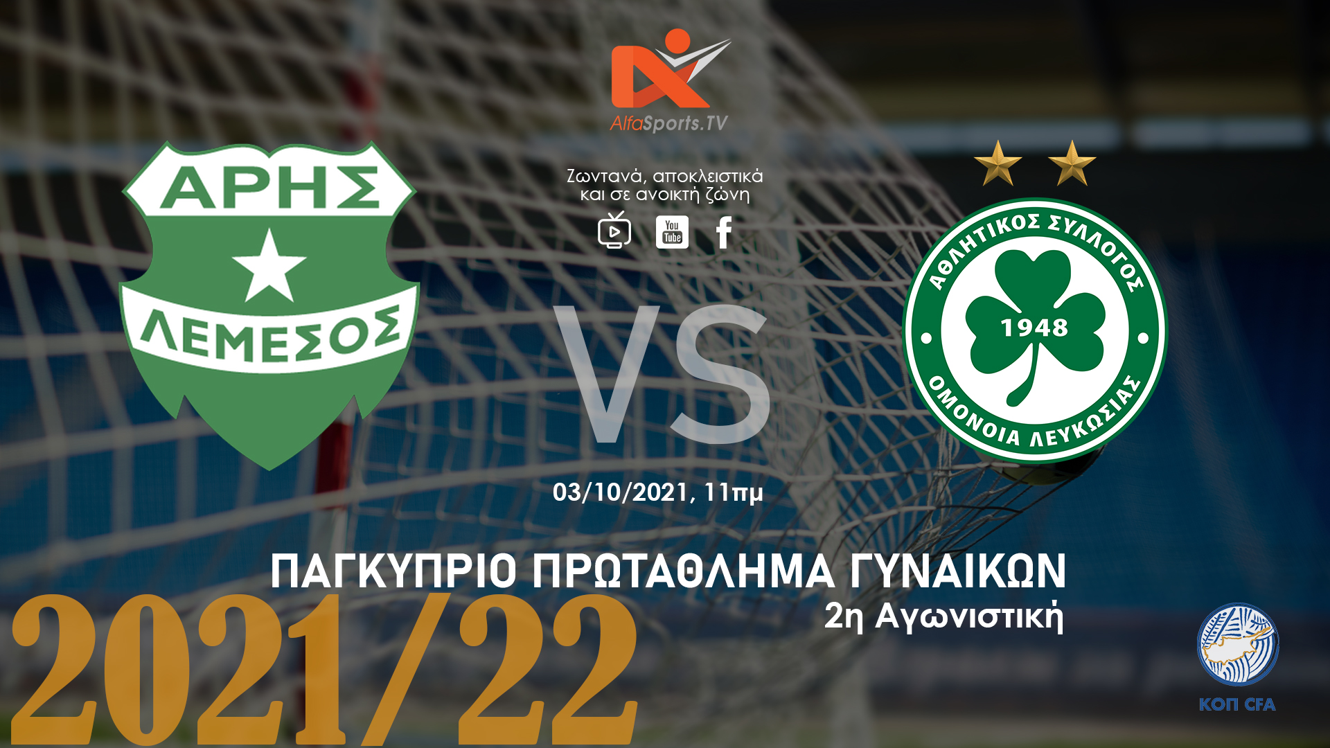 Δεύτερη αγωνιστική για το πρωτάθλημα του Γυναικείου ποδοσφαίρου, με τον Άρη Λεμεσού να υποδέχεται την Ομόνοια Λευκωσίας στο Κοινοτοικό Στάδιο.