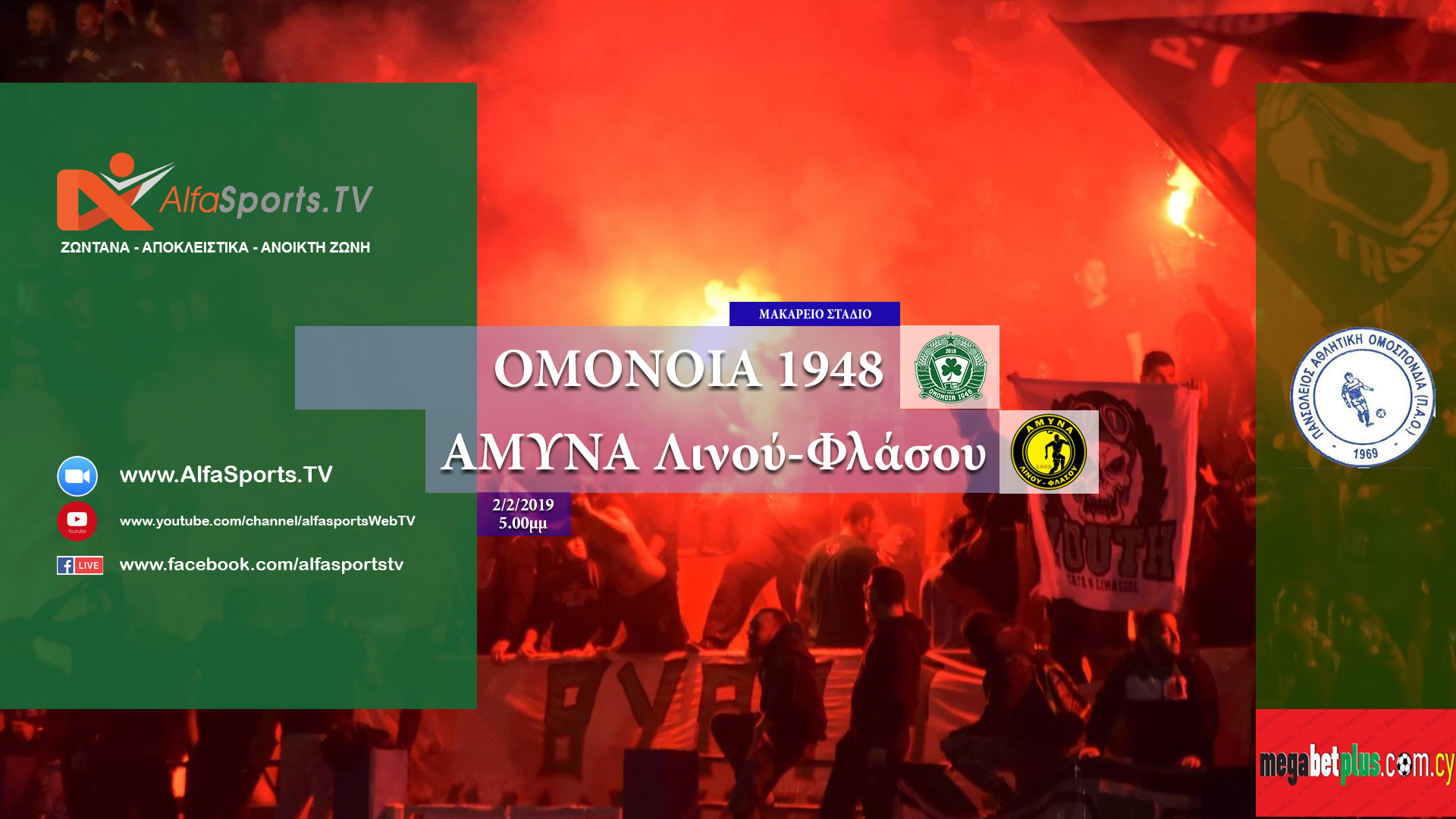 Ένα βήμα πριν τον πρώτο της τίτλο βρίσκεται η ΟΜΟΝΟΙΑ 1948 και υποδέχεται στο ΜΑΚΑΡΕΙΟ στάδιο την ΑΜΥΝΑ Λινού Φλάσου,.