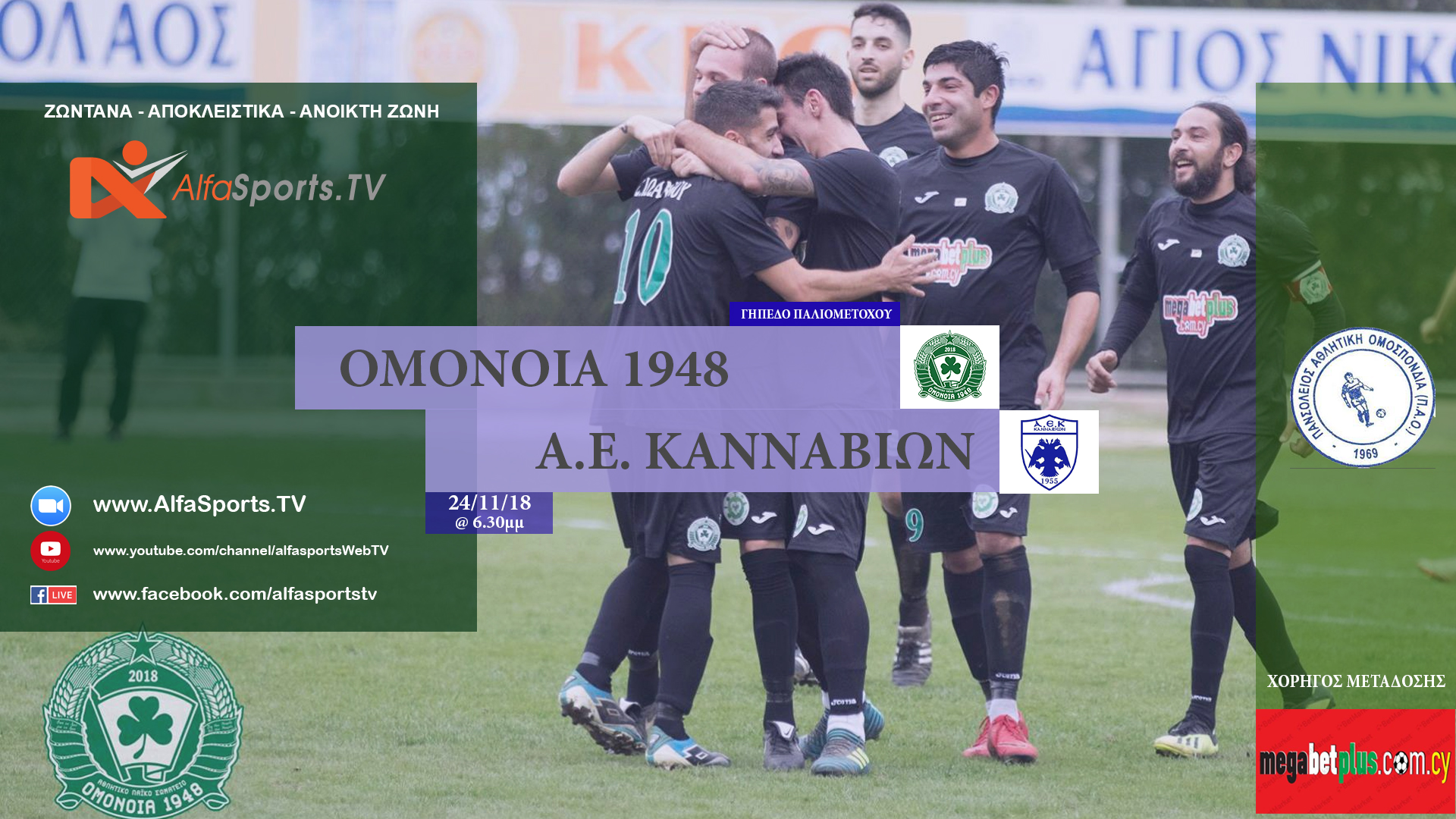 LIVE? ΟΜΟΝΟΙΑ 1948 vs ΑΕ ΚΑΝΝΑΒΙΩΝ (Alfasports1, 24/11 @ 6.30μμ) 3η αγωνιστική για το Πανσόλειο πρωτάθλημα και η ΟΜΟΝΟΙΑ 1948.