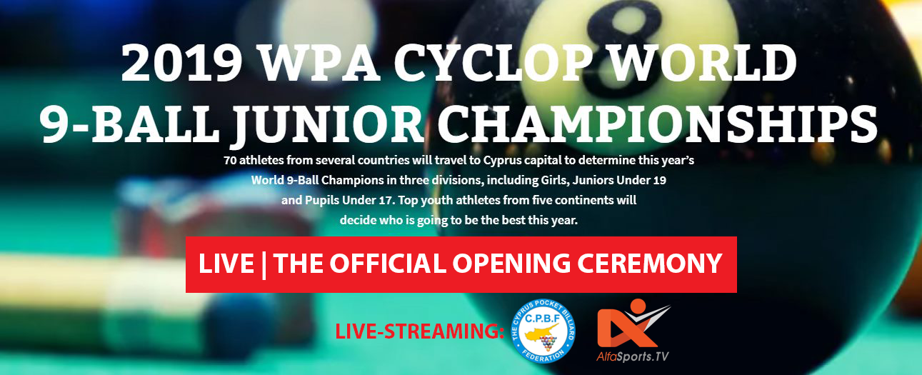 Watch live the Official Opening ceremony of WPA CYCLOP WORLD 9-BALL JUNIOR CHAMPIONSHIPS on our Facebook page and YouTube Channel.