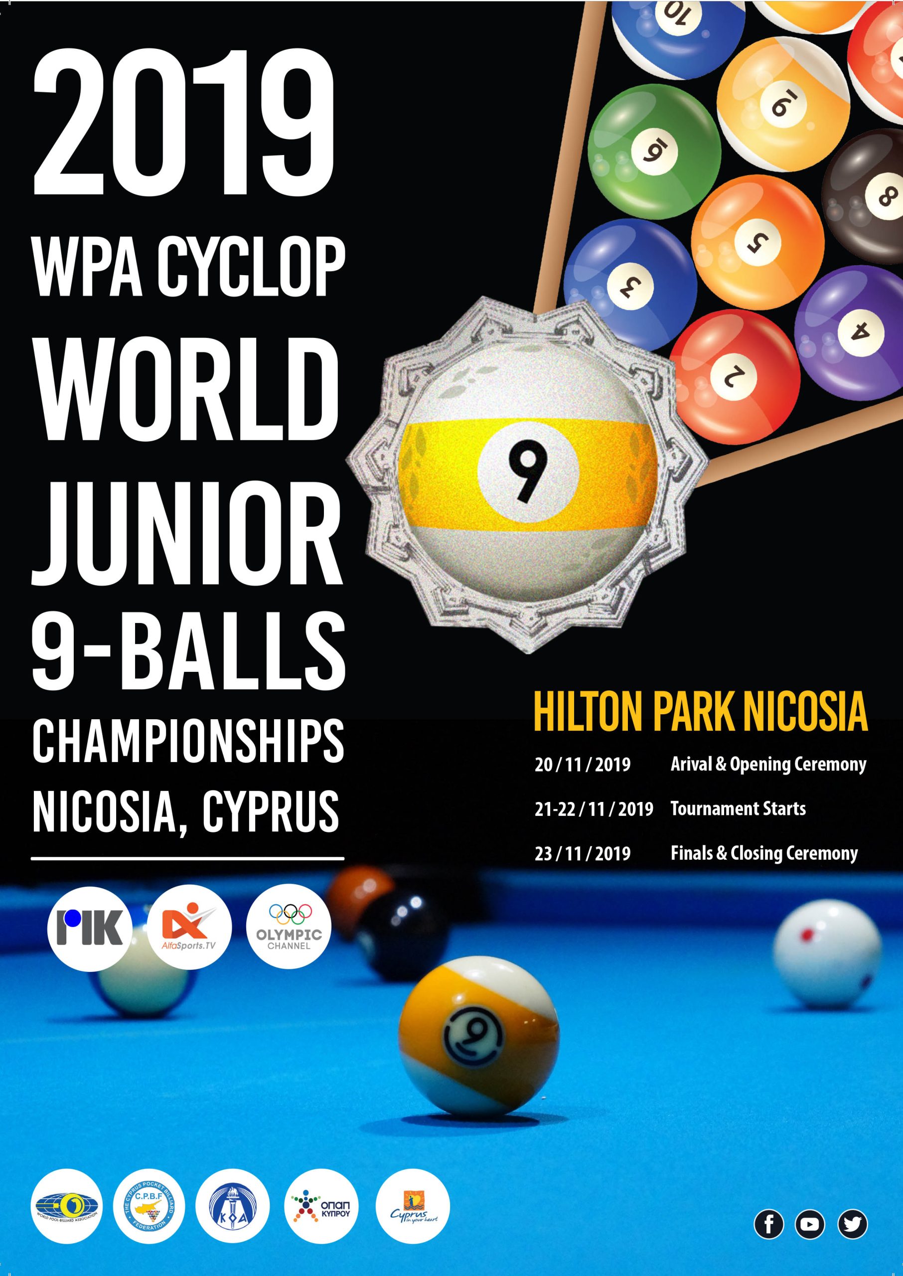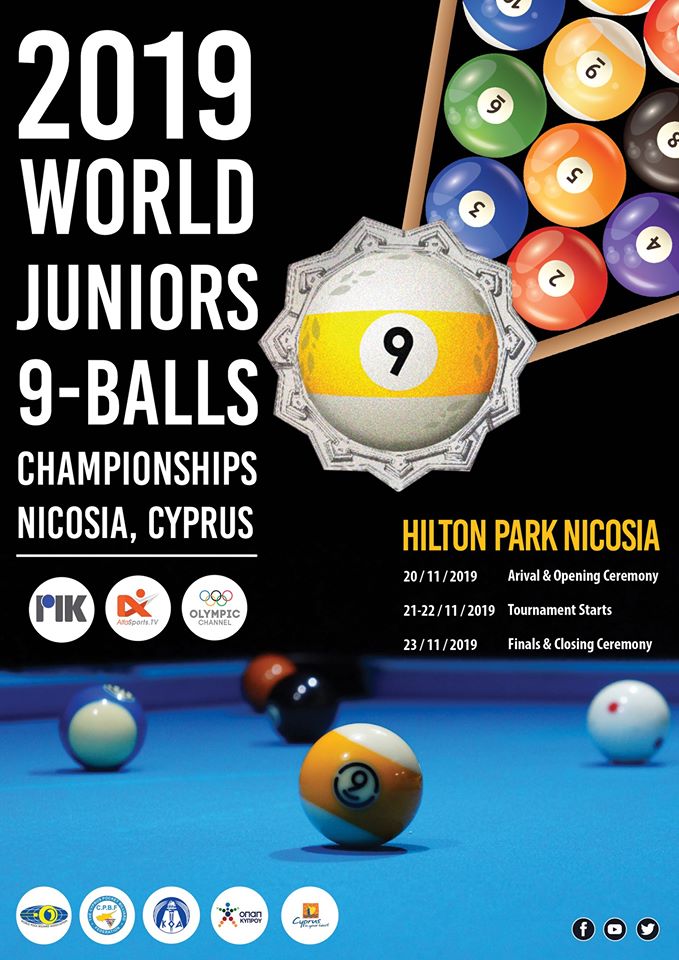 NICOSIA, CYPRUS HOSTS THE 2019 WPA CYCLOP WORLD JUNIOR 9-BALL CHAMPIONSHIPS 70 athletes from several countries will travel to Cyprus.