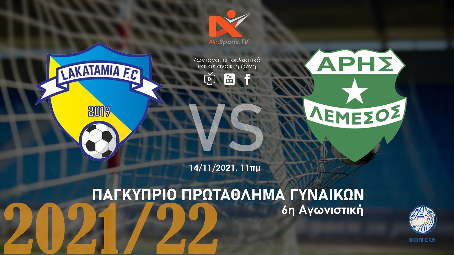 ?LIVE –Λακατάμεια FC v ΑΡΗΣ (Ανοικτή Ζώνη – 14/11 @ 11.00 πμ) Έκτη αγωνιστική για το Παγκύπριο πρωτάθλημα ποδοσφαίρου Γυναικών.