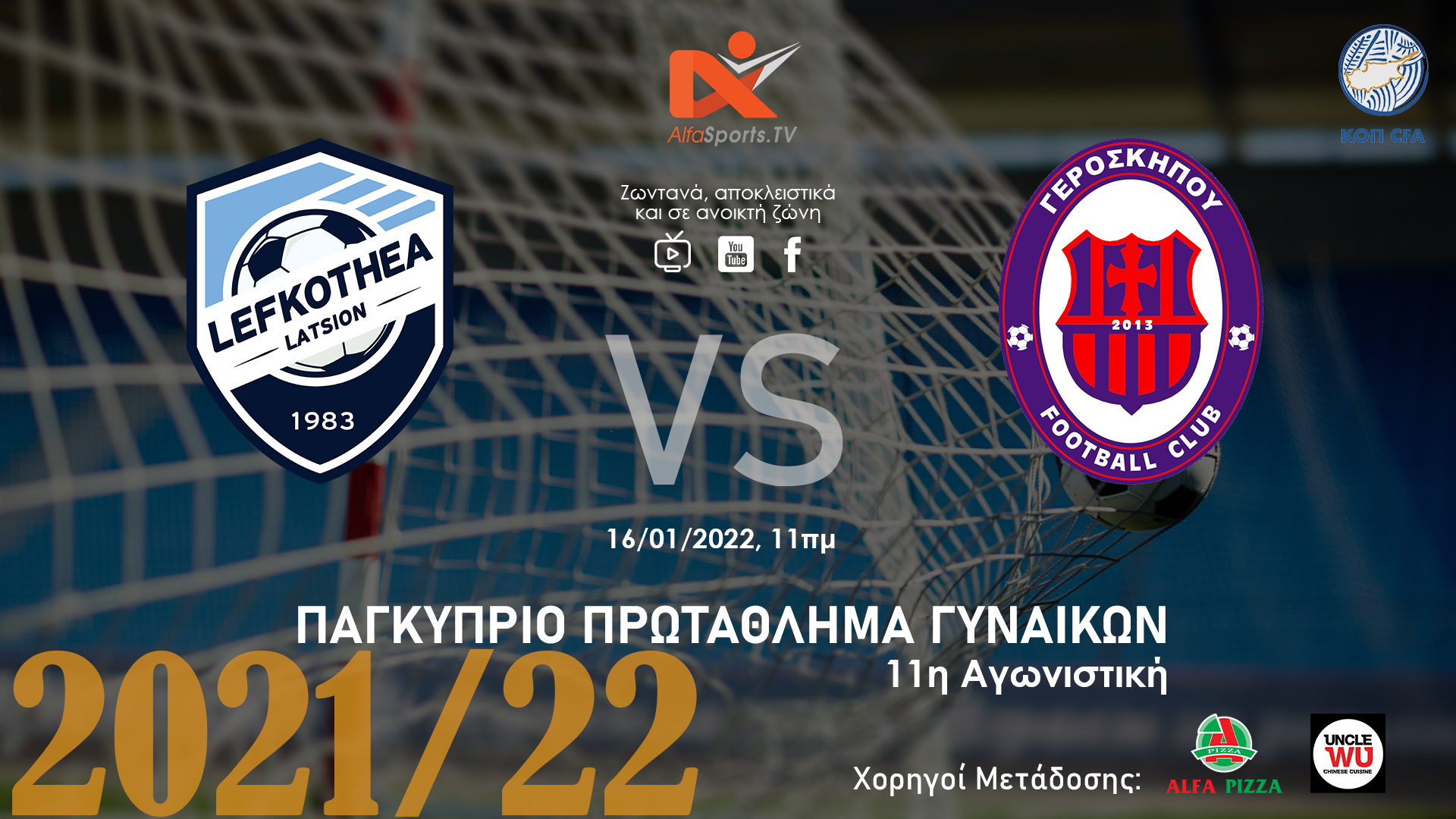 ?LIVE – ΛΕΥΚΟΘΕΑ Λατσιών vs ΓΕΡΟΣΚΗΠΟΥ Football Club (Ανοικτή Ζώνη – 16/01 @ 11.00 πμ) Εντέκατη αγωνιστική για το Παγκύπριο.