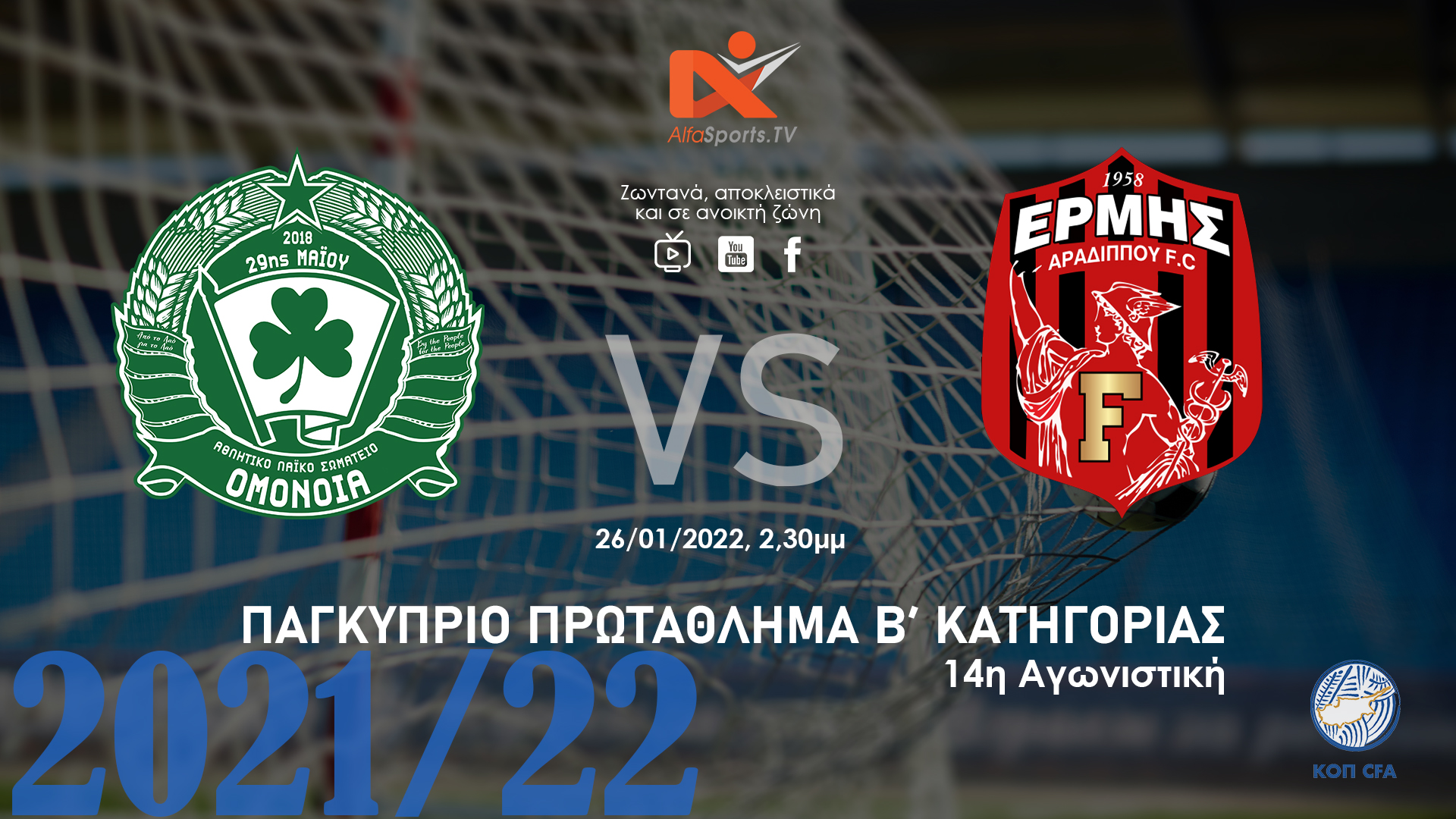?LIVE – ΟΜΟΝΟΙΑ 29Μ vs ΕΡΜΗΣ Αραδίππου (Ανοικτή Ζώνη – 26/01 @ 14.30 μμ) Δέκατητέταρτη αγωνιστική για το Παγκύπριο πρωτάθλημα.