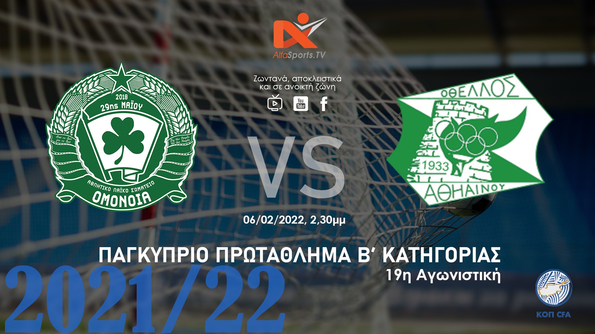 ?LIVE – ΟΜΟΝΟΙΑ 29Μ vs Οθέλλος Αθηαίνου (Ανοικτή Ζώνη – 06/02 @ 14.30 μμ) Δέκατηέννατη αγωνιστική για το Παγκύπριο πρωτάθλημα.
