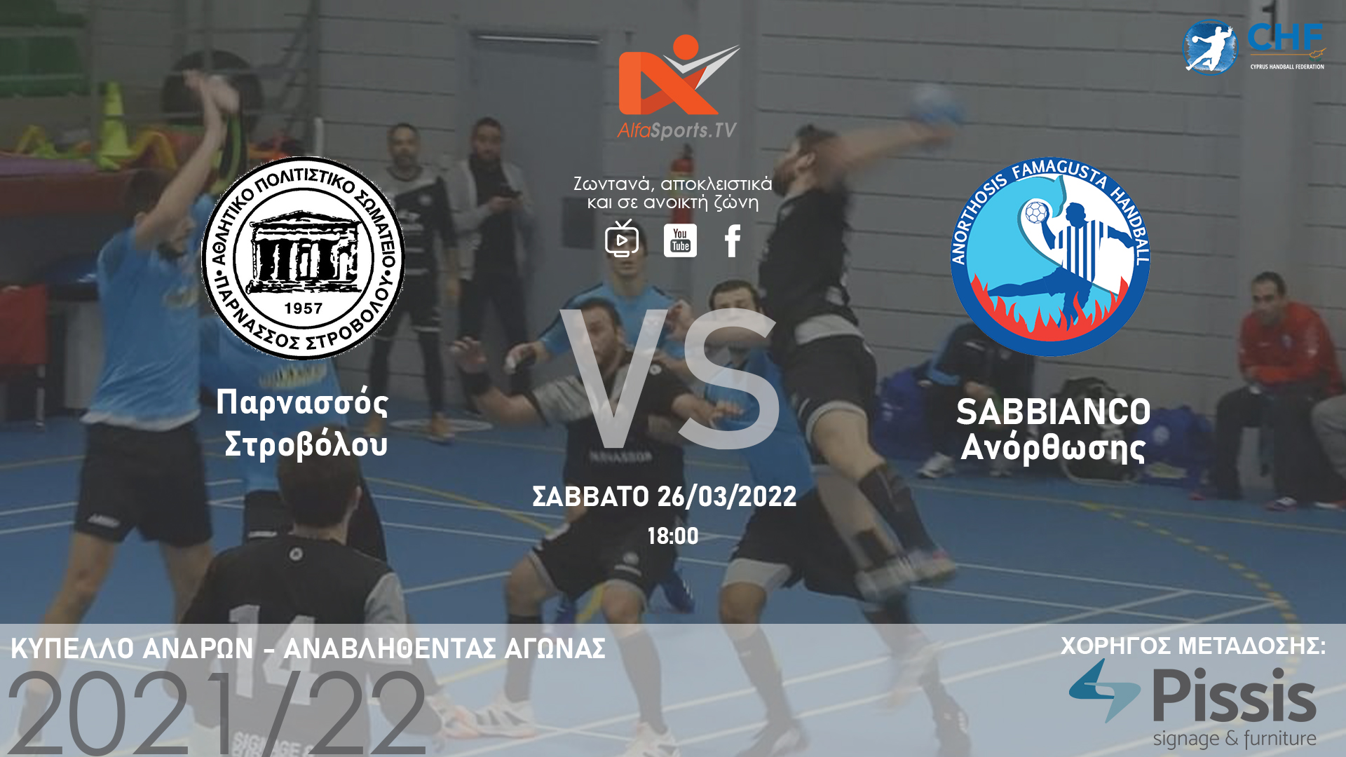 Μην χάσετε το μεγάλο ντέρμπι του Κυπριακού Handball Ανδρών ανάμεσα σε Παρνασσό Στροβόλου και Sabbianco Ανόρθωση, αυτό το Σάββατο 26/02/2022.