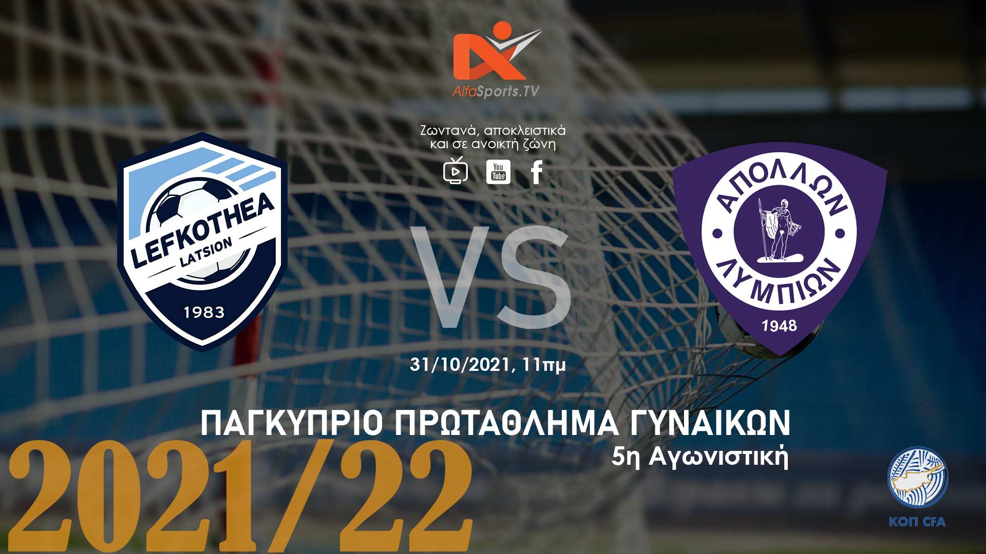 LIVE –Λευκοθέα Λατσιών v Απόλλων Λυμπιών (Ανοικτή Ζώνη – 31/10 @ 11.00 πμ) Πέμπτη αγωνιστική για το Παγκύπριο πρωτάθλημα ποδοσφαίρου.