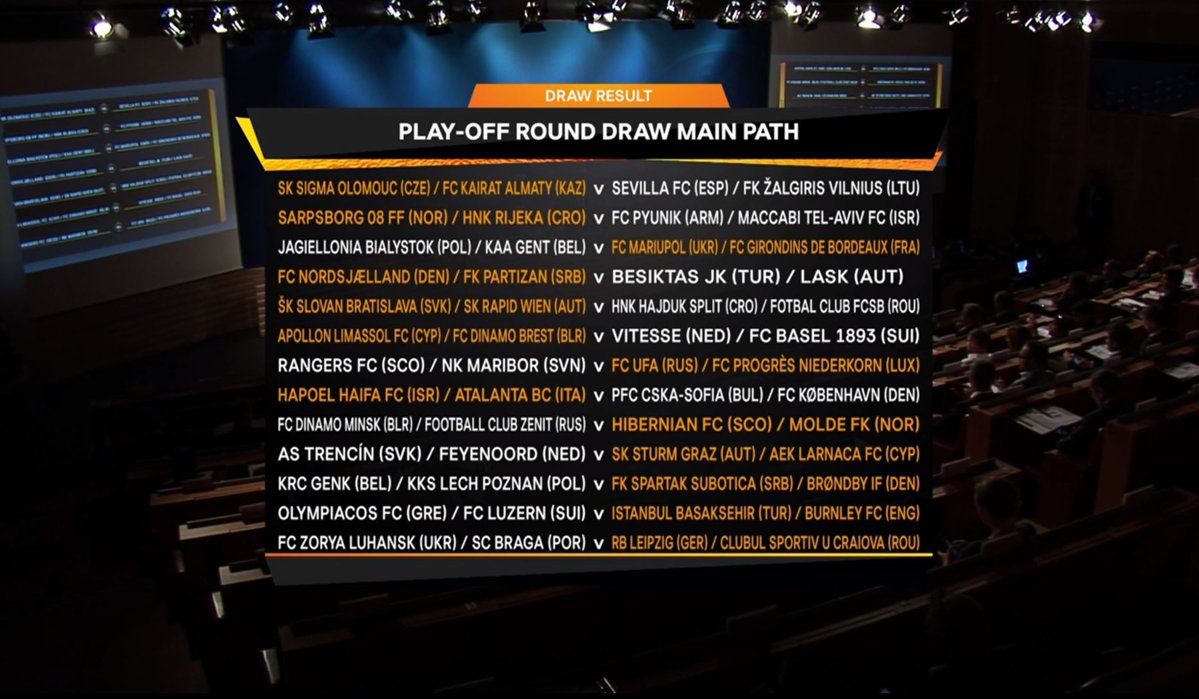 Άτυχες στάθηκαν οι εκπροσώποι μας στην κλήρωση των play offs του Europa League, καθώς και για τις τρεις ομάδες μας προέκυψαν δυνατοί αντίπαλοι.