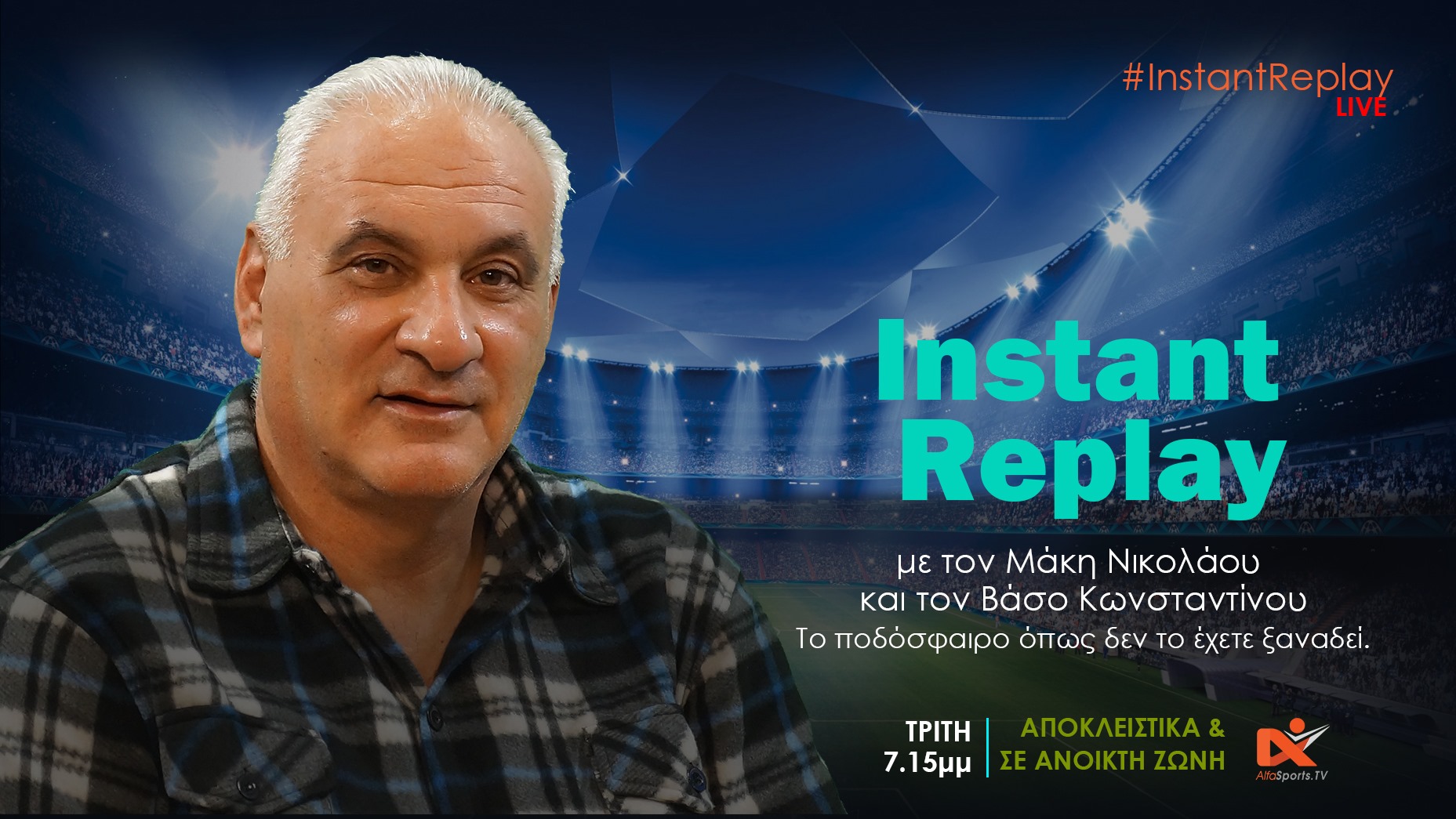 Μην χάσετε αυτήν την Τρίτη στις 19:15 μέσα από τις διαδικτυακές πλατφόρμες του Alfasports.TV σε Facebook – You Tube – Web TV και της τηλεοπτικής πλατφόρμας της Cosmos Wireless,μην χάσετε την αθλητική εκπομπή Instant Replay, με ανάλυση των αγώνων της ποδοσφαιρικής δράσης του Κυπριακού Πρωταθλήματος και επίμαχες φάσεις απο το Κυπριακό και Ελληνικό Πρωτάθλημα. Φιλοξενούμε στην εκπομπή μας μέσω Skype τον προπονητή Κώστα Σακκά.