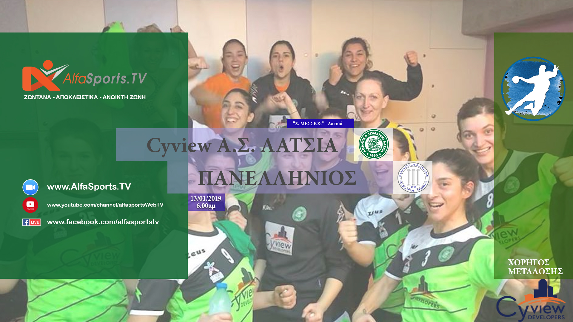 Ζωντανά, Αποκλειστικά και πάντοτε σε ανοικτή ζώνη στο διαδικτυακό κανάλι του Alfasports1 στο Facebook και από το YouTube
