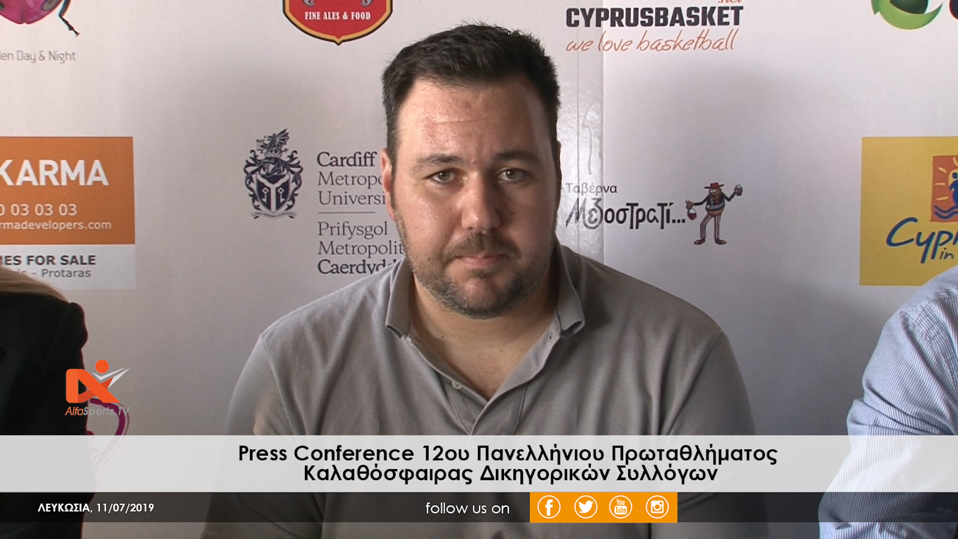 Πραγματοποιήθηκε σήμερα η διάσκεψη τύπου για το 12ο Πανελλήνιο Πρωτάθλημα Δικηγορικών Συλλόγων, το οποίο έρχεται για δεύτερη φορά στην Λευκωσία από τις 16-21/7/2019. Η διαδικτυακή αθλητική τηλεόραση του Alfasports TV στηρίζει έμπρακτα την διοργάνωση, φέρνοντας κοντά σας όλες τις αναμετρήσεις μέσα από τα κανάλια AlfasportsHD 1,2 και 3 σε ταυτόχρονες μεταδόσεις!